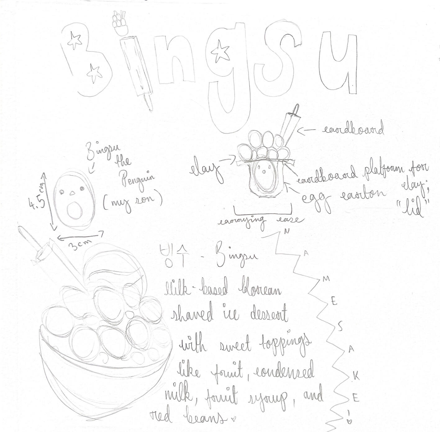 My first step into motherhood meant I had to provide for my adoptive son, Bingsu the Penguin. Bingsu is the name of a Korean shaved-ice dessert which includes condensed milk and various other toppings such as fruit, candy, or ice cream. Bingsu's bingsu is served on a golden tray, topped with Melona ice cream, a melon flavoured Korean ice cream to honour his roots, and strawberries cut in the shape of roses.