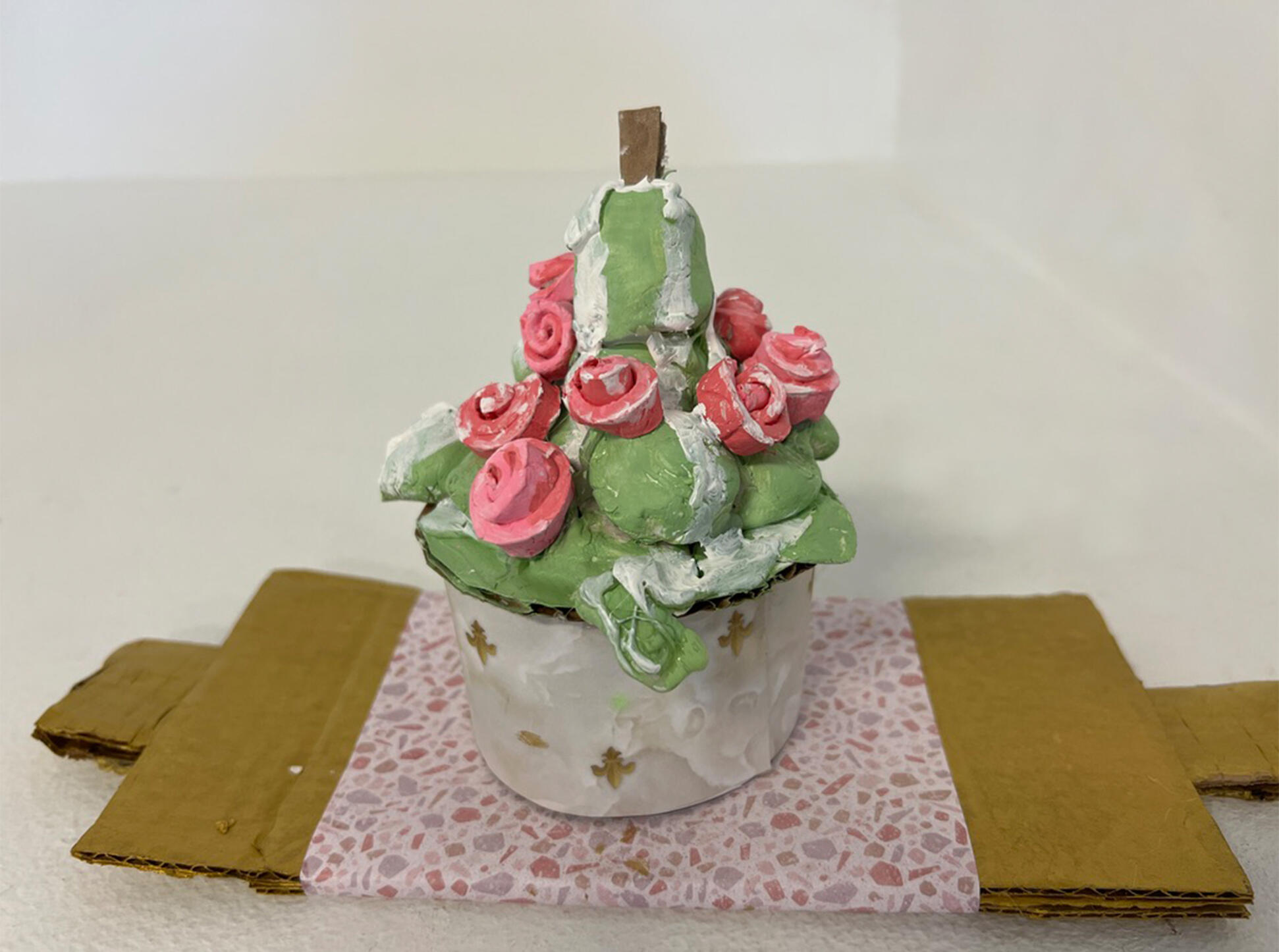 Air dry clay, cardboard, cardstock, Golden brand paint